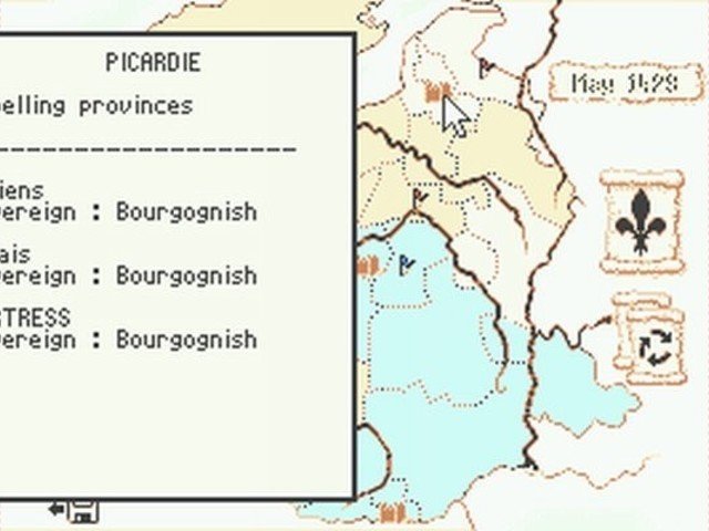 Una vez hecho, podrás controlar a Juana y asediar Orléans, tu próximo objetivo, para poder así coronar al Rey definitivamente en Réims. Una vez realizadas estas dos primeras acciones, ya tienes libertad total para moverte por el mapa. El juego se presenta como un mapa dividido en provincias, que no son más que casillas, donde podrás ir moviendo tus tropas y realizando los asedios y conquistas correspondientes, o bien fortificando tus plazas más importantes, todo dividido en turnos de juego.