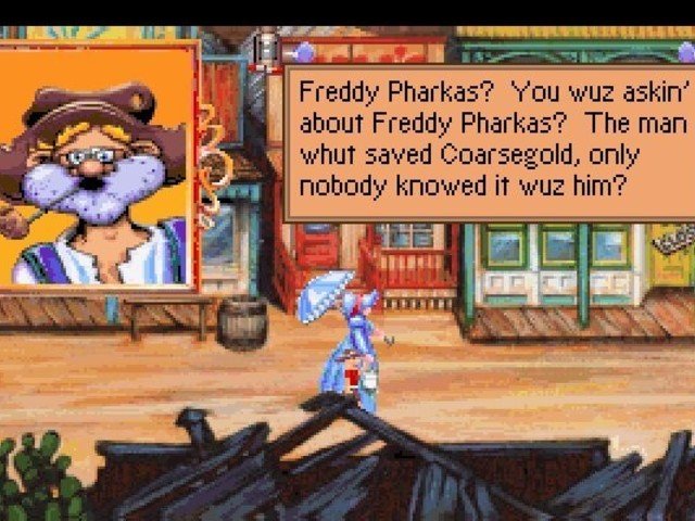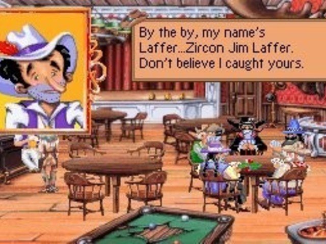 Como era de esperar, el juego rebosa humor por los cuatro costados, utilizado muchas veces para hacer referencias a otros juegos de la compañía, especialmente a la saga Larry (no olvidemos que son del mismo autor). Por ejemplo, podemos encontrar a Larry en la letrina del pueblo o si vamos al Saloon y preguntamos al pianista por la canción "Zircon Jim's Theme" empezará a tocar el tema de Leisure Suit Larry.