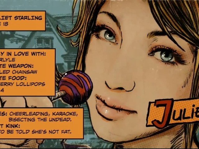 Uno de los juegos llamados a ser uno de los mejores del año por sus dosis de acción, y porque no decirlo, de bizarrismo, nos deleita con unos artworks con apariencia de viñetas de cómic de los personajes. El juego no es otro que Lollipop Chainsaw, donde la adorable Juliet pondrá en marcha su motosierra mientras se come una piruleta y mutila a multitud de zombies.
