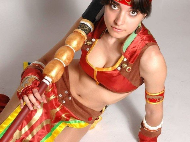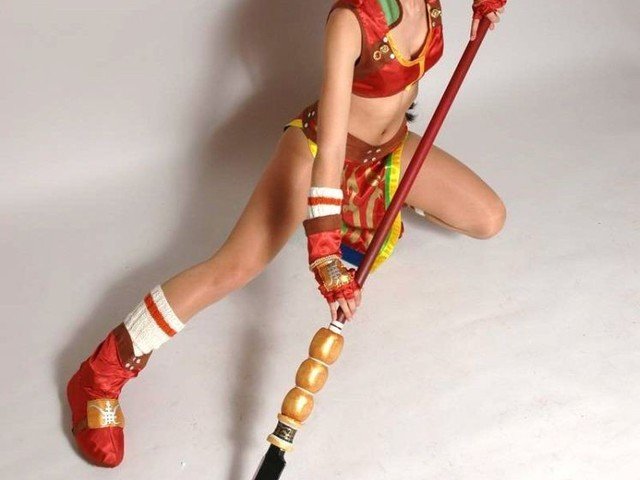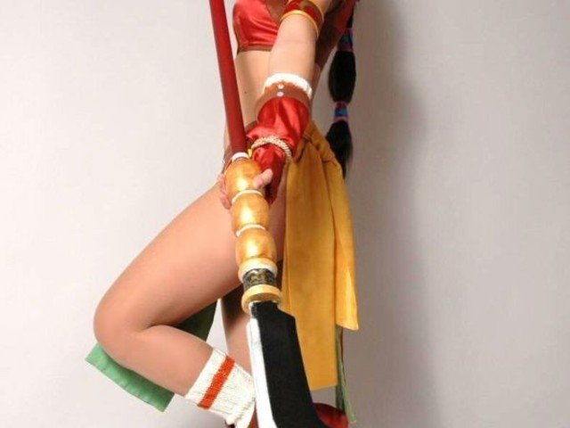 En este caso el personaje elegido es la guerrera Seong Mi-na, de la saga Soul Calibur, ataviada como no podría ser de otra manera con su enorme lanza.