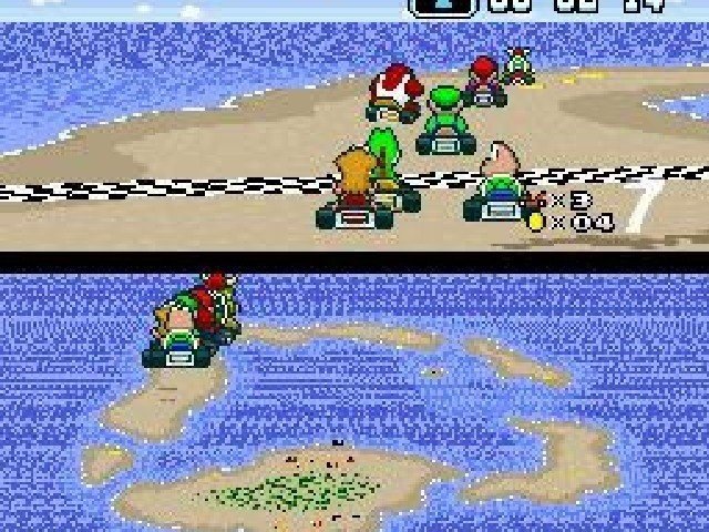 El juego también ofrece 3 modos para 2 jugadores. Podemos disfrutar el Modo GP a 2 jugadores, y también realizar carreras uno contra otro el modo batalla, donde debemos explotar los globos del rival a base de tirarle objetos.