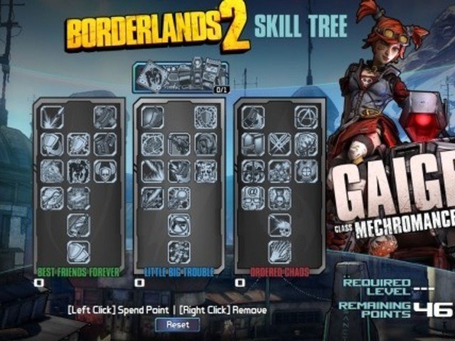 Gaige es capaz de invocar a un poderoso robot para que le ayuda en el batalla. Como los otros cuatro personajes del juego, tiene 3 ramas de habilidades para que la personalicemos a nuestros gusto.