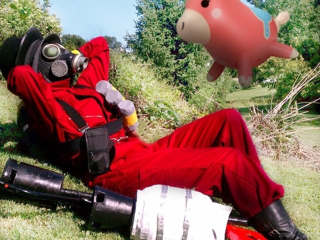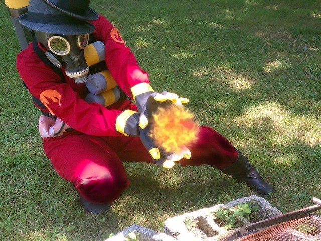 Hoy os traigo un gracioso cosplay (dejando de lado la pechugas...) protagonizado por el misterioso y enmascarado Pyro, personaje del gran juego multijugador Team Fortress 2.