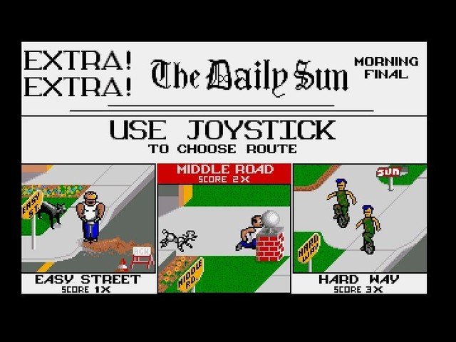El juego empieza con la selección del nivel de dificultad, que no es otra cosa que elegir una de las tres calles: Easy Street, Middle Road y Hard Way, cada una con sus bonificadores de puntos. El objetivo final del juego es completar toda una semana de trabajo, entregando perfectamente los periódicos en los buzones.