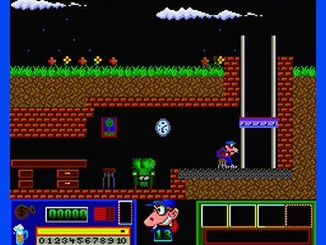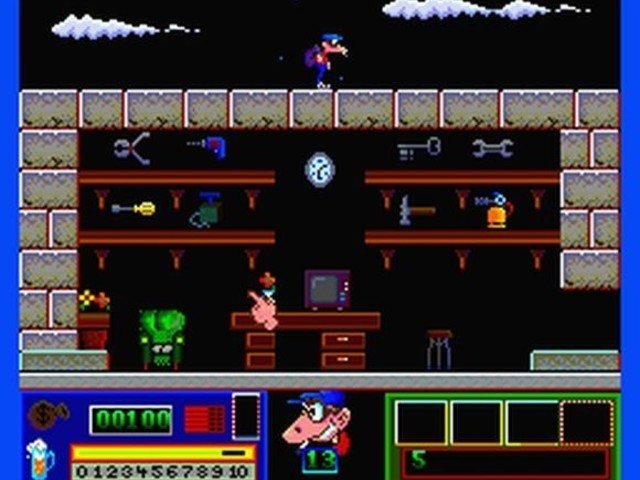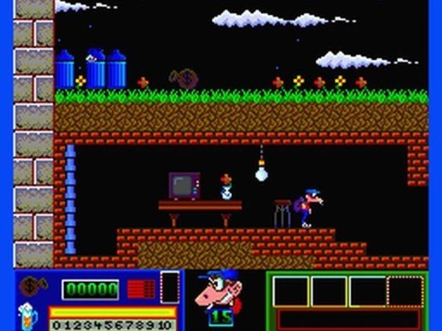 Pero además de dichos objetos, Goody necesitará los 13 cilindros que contienen la clave para abrir la caja fuerte del banco. También dispondremos de una escalera para llegar a sitios que con un simple salto no podríamos.