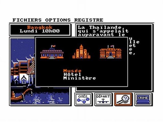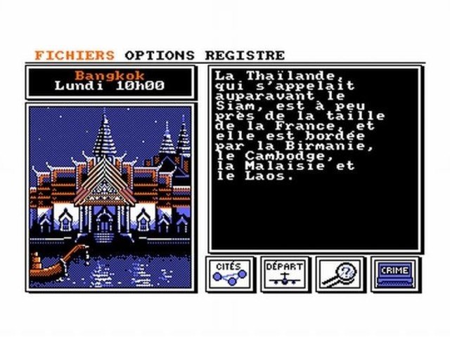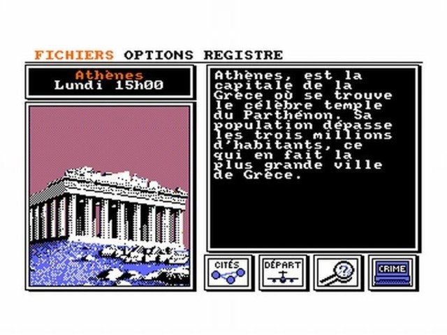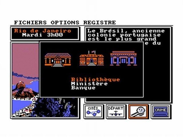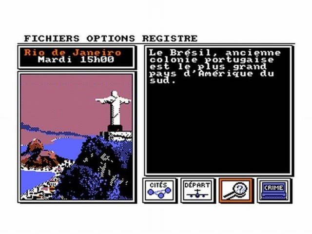 El juego consta de 30 ciudades, que se nos mostrarán posicionadas geográficamente y se nos hará una escueta explicación sobre dicha ciudad, no hay que olvidar que Carmen Sandiego es un juego educativo.