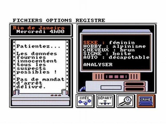 El tiempo es un elemento importante en la partida, ya que estará limitado y si no detenemos al sospechoso antes de tiempo, se nos escapará. Cada interrogatorio nos hara perder tiempo, por lo que si ya sabemos qué criminal es el que buscamos deberemos reducirlos, los justos para saber a donde ha viajado, pero no para extraer otros datos. Una vez realizados los interrogatorios en una ciudad en concreto, nos tocará viajar a nuestro próximo destino, si lo hacemos correctamente una secuencia nos lo mostrará, si no, deberemos volver sobre nuestros pasos y escoger otro destino, con la consecuente pérdida de tiempo. Por otra parte, que el ordenador analice los datos recopilados, también nos hará perder tiempo, así que solo deberemos utilizar esta opción cuando tengamos suficientes, ya que si tenemos pocos puede haber más de un sospechoso que responda a esos datos y no podremos emitir la orden de arresto.