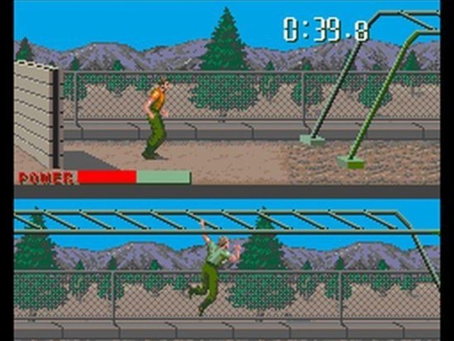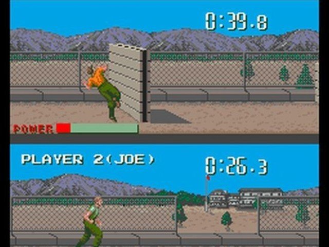 Prueba 1 - Carrera de obstáculos o pista americana: Pantalla de scroll lateral machacateclas donde debemos ir corriendo y sorteando los obstáculos, consistentes en dos tipos de muros, unos bajos que podremos saltar y unos altos que deberemos escalar. También aparece la clásica escalera horizontal que deberemos superar agarrándonos a los diferentes hierros y avanzando. La deberemos completar en el tiempo establecido.