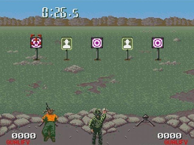 Prueba 2 - Campo de tiro número 1: En la segunda pantalla, nos encontraremos con nuestro personaje apostado a manos de una metralleta. Deberemos mover el cursor y disparar a las diferentes dianas que van apareciendo al grito de nuestro sargento: "Fire, Fire!". Necesitamos destruir un número determinado para pasar la prueba, pero cuantas más destruyamos más puntos ganaremos.