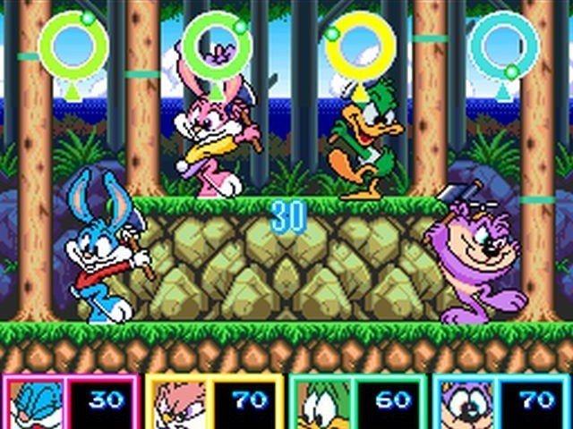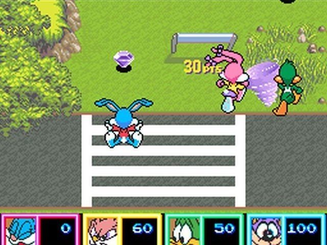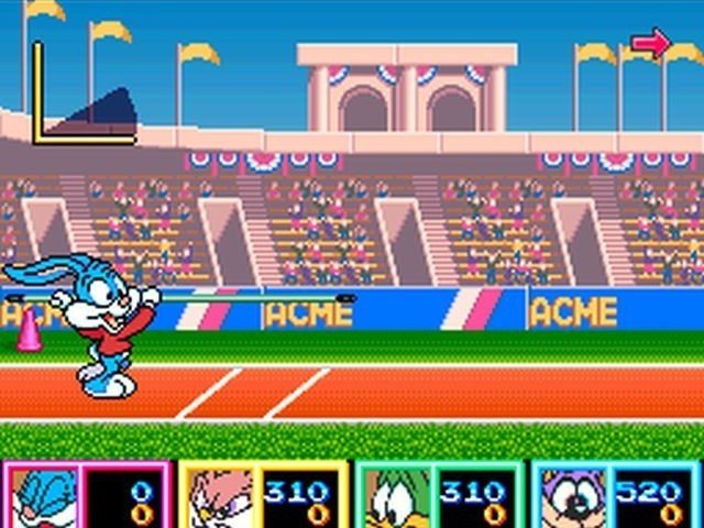 Como personajes podemos elegir a Buster Bunny, Babs Bunny, Plucky Duck, y Dizzy Devil. Todos los personajes tienen las mismas características, así que el resultado en las pruebas depende totalmente de nuestra habilidad. Hay 4 niveles de dificultad, y cada uno dispone de entre 6 y 7 eventos en los que competir. Las pruebas son muy variadas: Ski, carrera de obstáculos, lanzamiento de disco y levantamiento de peso son algunas de ellas. Por supuesto, todas ellas con un toque del universo Tiny Toon, así que no esperéis ver pruebas normales y realistas, de hecho, encontraréis todo lo contrario.