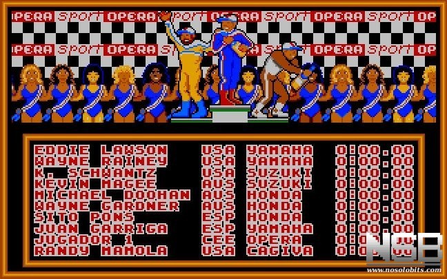 El juego dispone de los 16 circuitos del Mundial en aquel entonces. También puedes consultar los tiempos que han realizado tus rivales en las sesiones de entrenamiento, para ver quien puede ser el rival a batir en ese circuito.