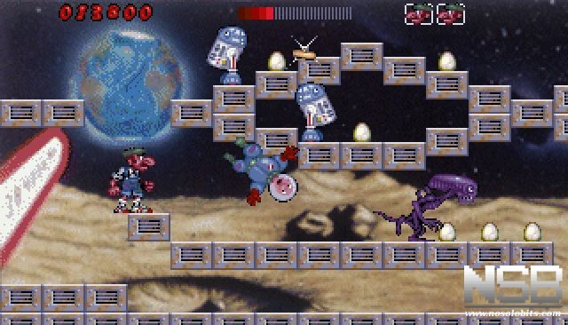 El juego es un plataformas al uso, donde deberemos aplastar todos los huevos de los marcianos y salvar a los héroes con la inestimable ayuda de nuestro amigo gusano, Spaghetti, quien nos evitará más de un trompazo contra el suelo.
