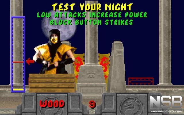 Cada tres combates contra la máquina o cada cinco contra un jugador, aparecerá un minijuego llamado "Test Your Might". Básicamente consiste en apretar teclas repetidamente para hacer subir una barra que, cuando esté en el nivel indicado, el jugador deberá apretar un botón para lanzar el golpe que deberá romper el material que tiene enfrente. Los puntos obtenidos por romper el material dependen del nivel: 100.000 por la madera, 200.000 por la piedra, 500.000 por el acero, 750.000 por el rubí y 1.000.000 por el diamante.
