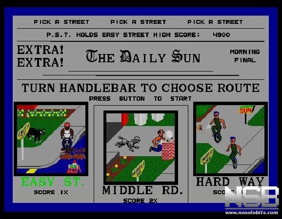 El juego empieza con la elección de la dificultad, según la calle: Easy Street, Middle Road y Hard Way. Debes intentar repartir perfectamente los periódicos durante toda una semana y evitar tener ningún accidente.