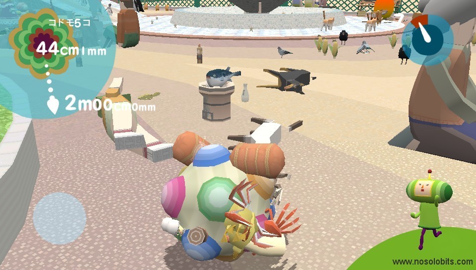 En Touch my Katamari nuestro objetivo es hacer rodar una bola, conocida como Katamari, que debemos hacer crecer al tamaño requerido durante un tiempo limitado pasando por encima de objetos que se quedarán pegados a ella.
