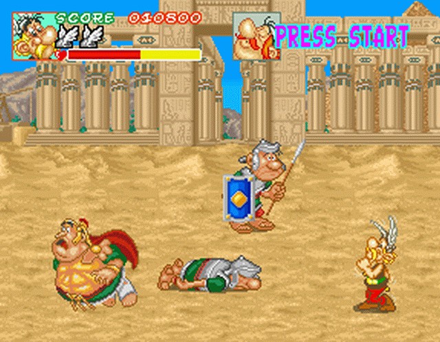Astérix y Obélix, los personajes del mítico cómic creado por René Goscinny (guión) y Albert Uderzo (dibujos), también han sido protagonistas en numerosas ocasiones de videojuegos basados en sus aventuras. Uno de ellos fue creado por Konami, que al igual que con otras licencias como Los Simpsons o las Tortugas Ninja, crearon un beat'em up fiel a la serie y de gran calidad.