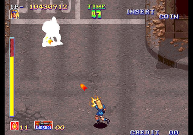 Una vez en el campo de batalla, podemos movernos en las ocho direcciones, disparar, lanzar bombas, realizar el movimiento evasivo o cambiar de personaje (solo en modo equipo). Una característica muy importante es que si mantenemos pulsado el botón de disparar, fijamos la dirección de disparo mientras seguimos disparando, pero igualmente podemos movernos con total libertad por el escenario, incluso poder realizar el movimiento evasivo y lanzar bombas. Gracias a esto, podemos sacar ventaja en situaciones en las que hay muchos enemigos en una zona de la pantalla, o atacando a un enemigo resistente, ya que podemos lanzar toda nuestra potencia de disparo mientras esquivamos sus ataques y no perdemos el foco sobre ellos. También podemos atacar cuerpo a cuerpo, lo cual es muy interesante ya que de esta manera los enemigos nos dan bonus de puntos, recargas de salud o incluso un ataque que acaba con todos los enemigos en pantalla.