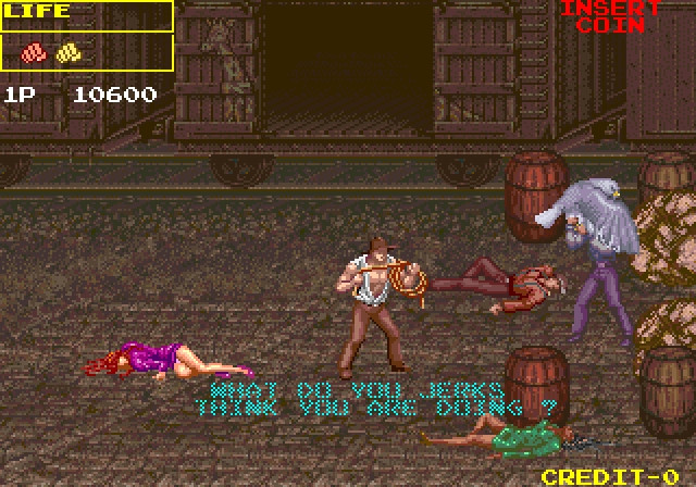 El juego consiste en 8 pantallas diferentes, de las cuales 1 de ellas es de bonus. Los escenarios son bastante variados, y van desde la ciudad de inicio hasta la guarida de los cazadores, pasando por un tren, un barco e incluso una caverna. En cambio, los enemigos se repiten bastante, siendo unos pocos tipos con diferentes patrones de colores. Entre ellos llaman la atención unas mujeres con minifalda y chaqueta, que nos lanzarán granadas sin cesar. Por supuesto, al final de cada nivel hay que enfrentarse a un jefe que nos pondrá en más de un aprieto.