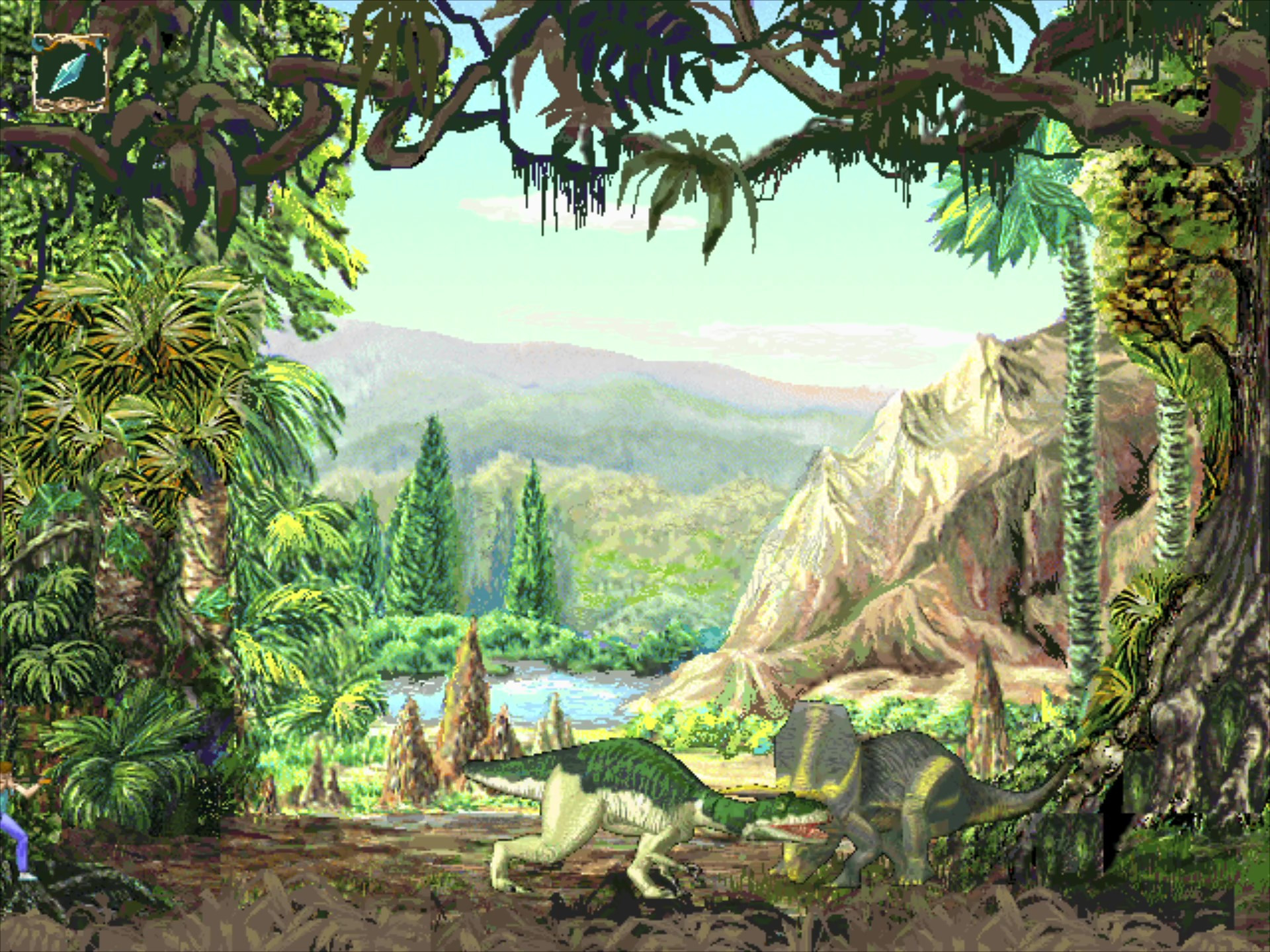 A nivel gráfico es muy llamativo, usando sprites sacados de gráficos prerrenderizados y con unos fondos realmente detallados, sobre todos los ambientados en la selva. Los movimientos de los personajes, especialmente los de los protagonistas y los dinosaurios son también de una gran fluidez y calidad. Cierto es que hoy en día este tipo de gráficos han quedado bastante desfasados, pero mirándolos con perspectiva, aguantan bien el tipo. El juego también ofrece diferentes músicas y efectos de sonido, que si bien no son memorables, acompañan bien a la partida. No obstante, en el apartado técnico también tiene sus peros, como fallos gráficos en algunos escenarios o cortes en la música cuando hay diálogos con otros personajes.