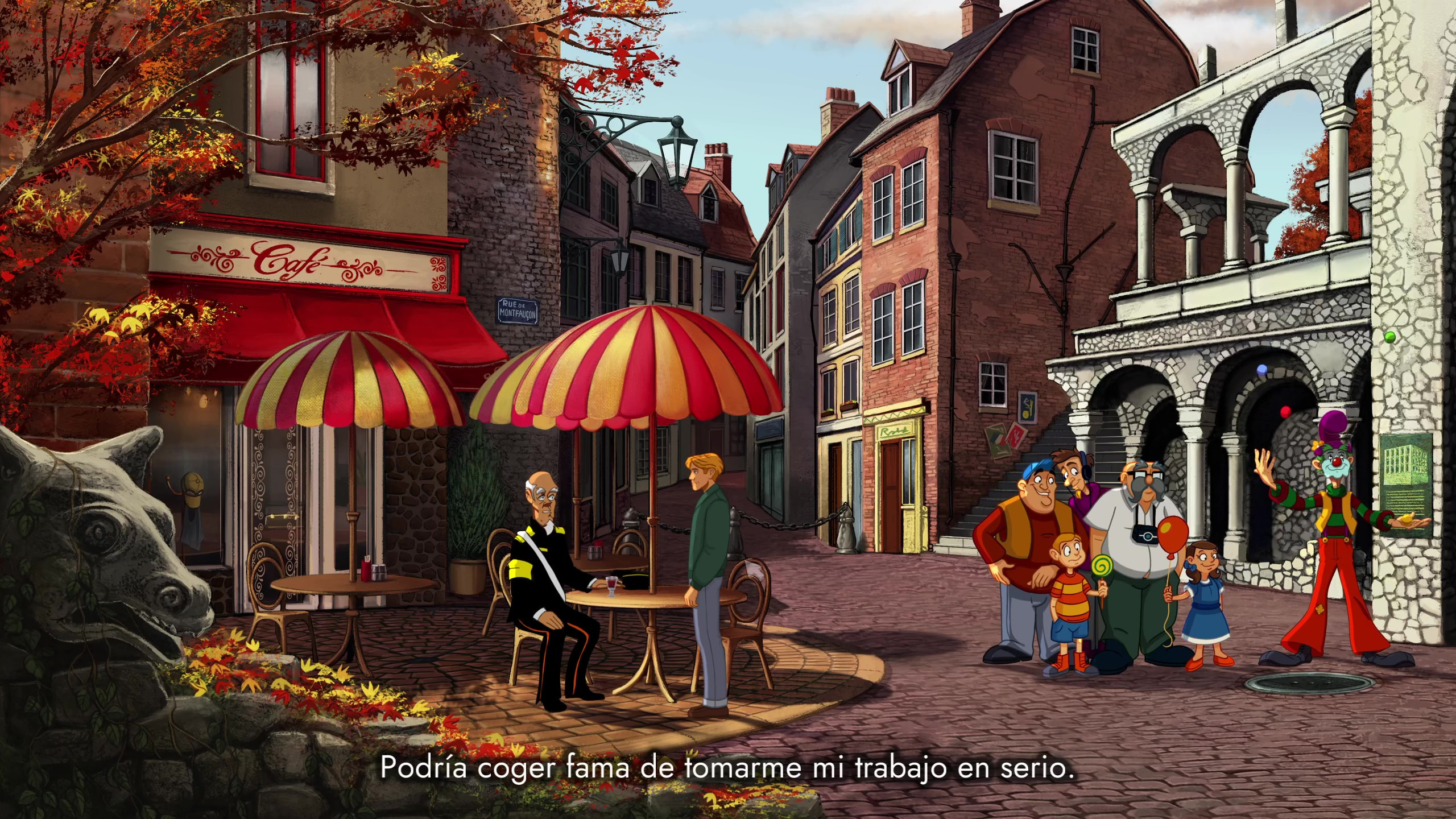 Lo más llamativo de este remake es el cambio visual. Todo se ha vuelto a ilustrar en 4K para esta versión: personajes, escenarios y escenas cinematográficas. Revolution ha confirmado que se ha usado IA para ayudarse, pero solamente entrenada con sus propio material y supervisada por los artistas del equipo. En general respeta la obra original, pero si que tiene cambios estéticos y de iluminación en los escenarios. De hecho, en algunas escenas he notado un exceso de luz que estropea un poco la esencia del juego original. Para quien no haya jugado nunca verá que esta versión luce espectacular. Para el que haya jugado al original, puede que se quede con los gráficos originales. A mi en general me ha encantado el redibujado. El juego permite cambiar entre gráficos originales y renovados en cualquier momento, y es bastante divertido ir alternando para ver que diferencias hay entre ambas versiones. Aquí se puede ver una comparativa de las dos versiones.