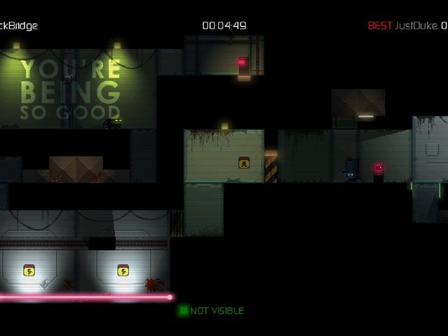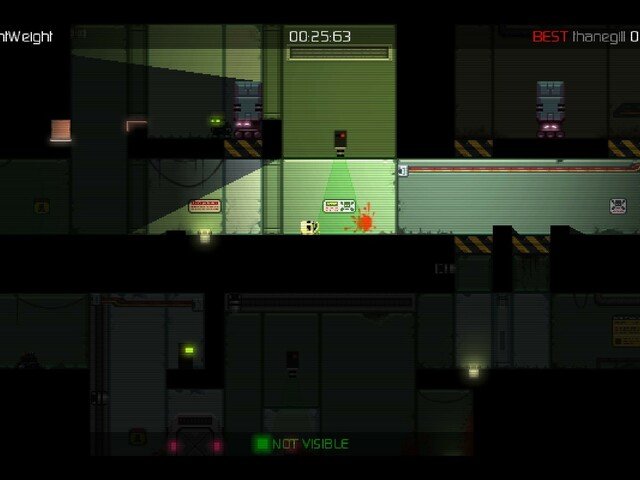 Si somos detectados por los robots no habrá piedad para nosotros. Un gran rayo láser hará que nuestro muñequito salte en pedazos, dejando mucha sangre salpicada por el escenario. Los niveles tienen varios checkpoints, así que no tendremos que rejugar todo el nivel cada vez que nos maten.