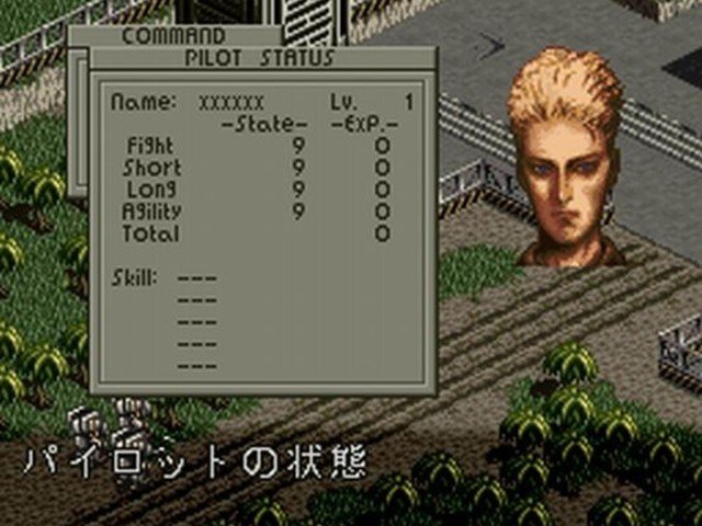 Por último, cada piloto posee sus estadísticas. Además de tener un nivel de experiencia típico en estos juegos, también dispondrá de habilidades de combate, estas son: melée (lucha), armas a corta distancia, armas a larga distancia y agilidad. Al subir de nivel, se repartiran una cierta cantidad de puntos entre estas habilidades, pero es importante saber que aquellas habilidades que más hayamos utilizado se verán incrementadas en mayor medida. La única habilidad que no hemos explicado es la de agilidad, que mide la velocidad de ataque / contraataque que nuestro mecha tendrá, pudiendo avanzarnos a su ataque, o en el caso contrario, recibir primero.